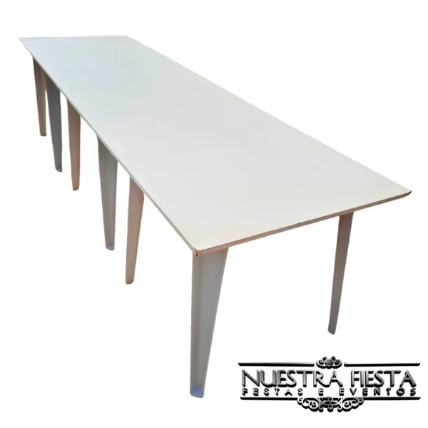Se você está em busca de mesas pranchão para eventos, a Nuestra Fiesta tem a solução ideal no segmento de locação. Nossas mesas pranchão retangulares, com dimensões de 80 x 74 x 275 cm (largura x altura x comprimento), acomodam confortavelmente até 12 pessoas, garantindo a melhor experiência para seus convidados.